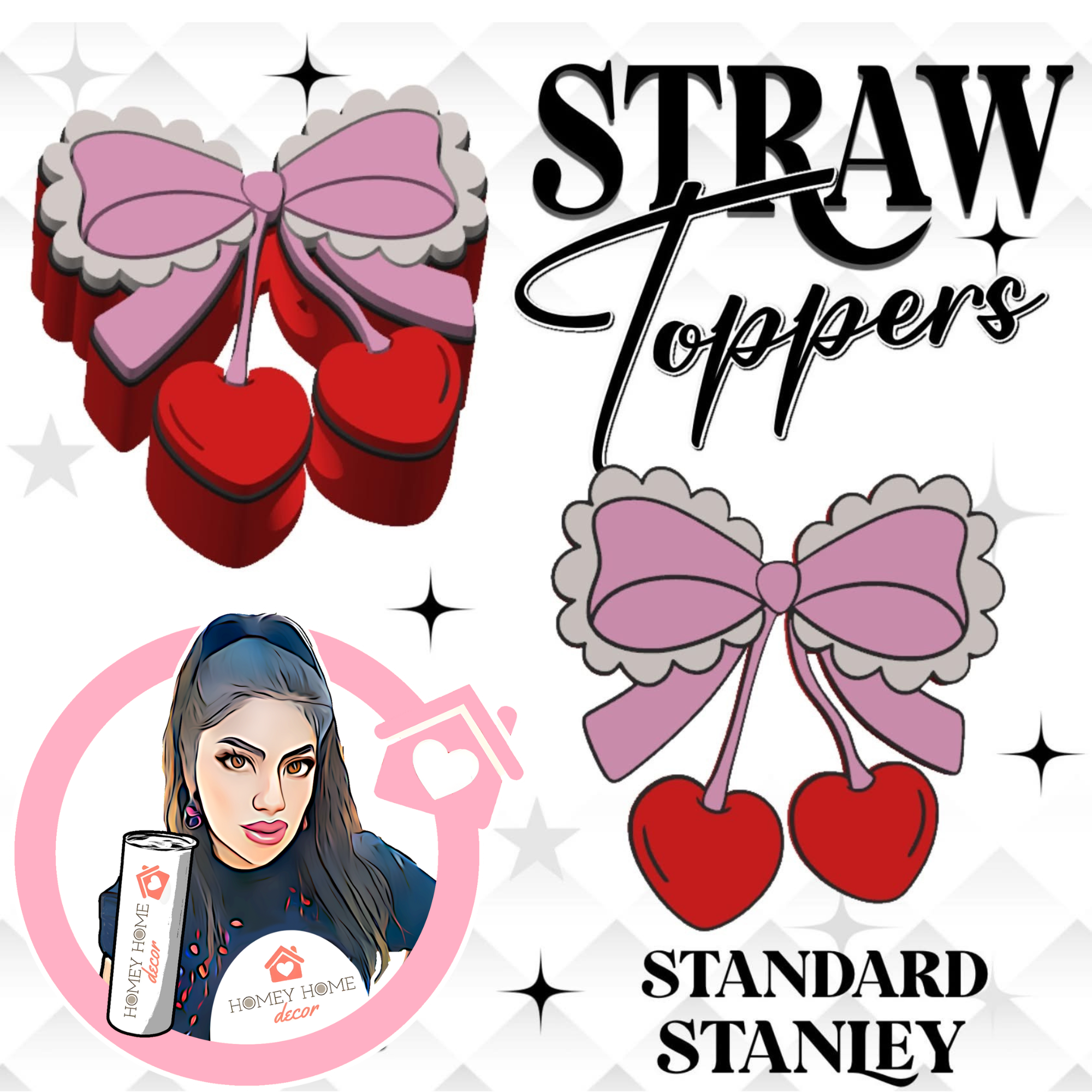 Bow Cherries 3D Printed Straw Topper