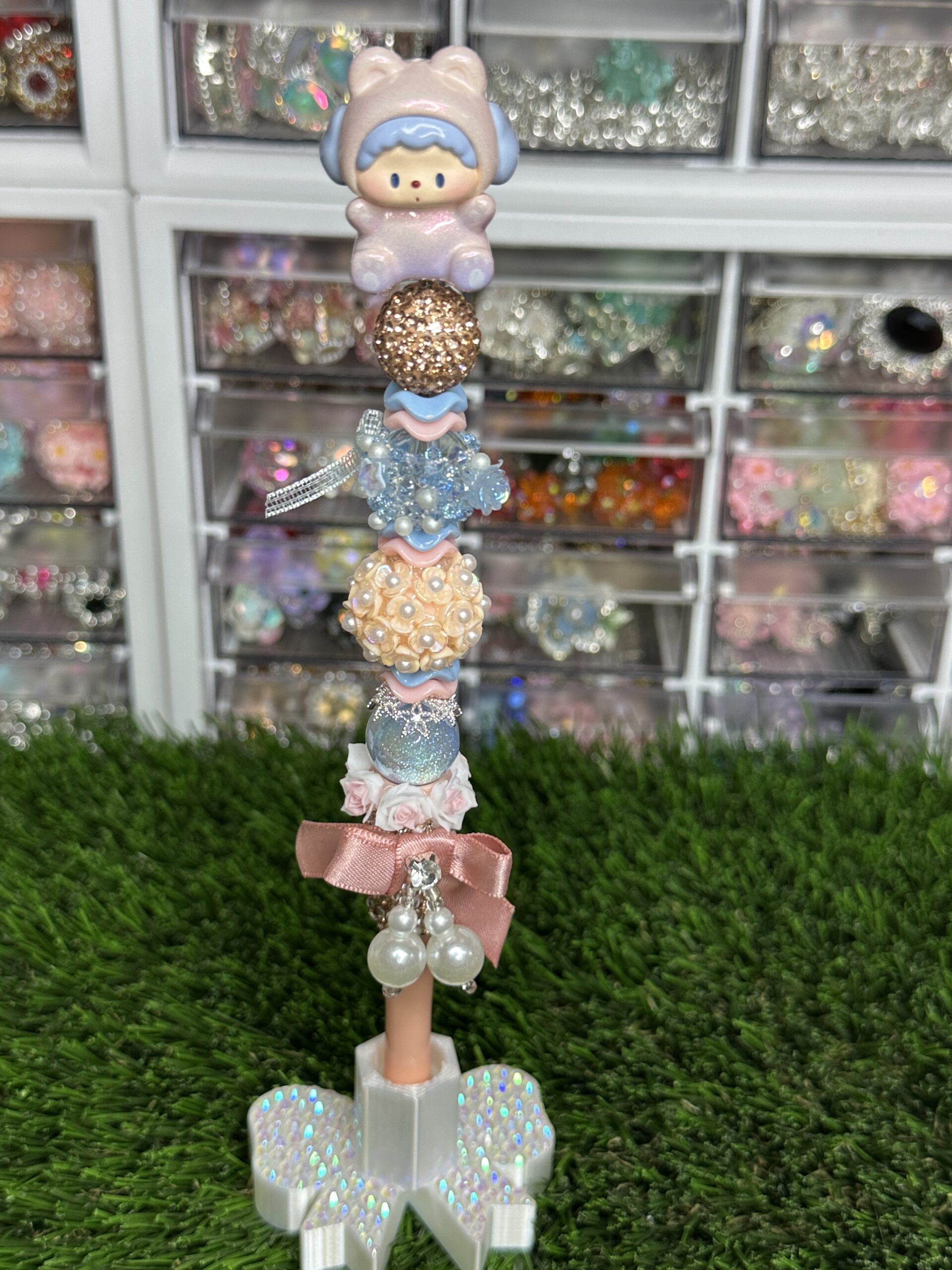 Blue Bunny Girl Beaded Pen